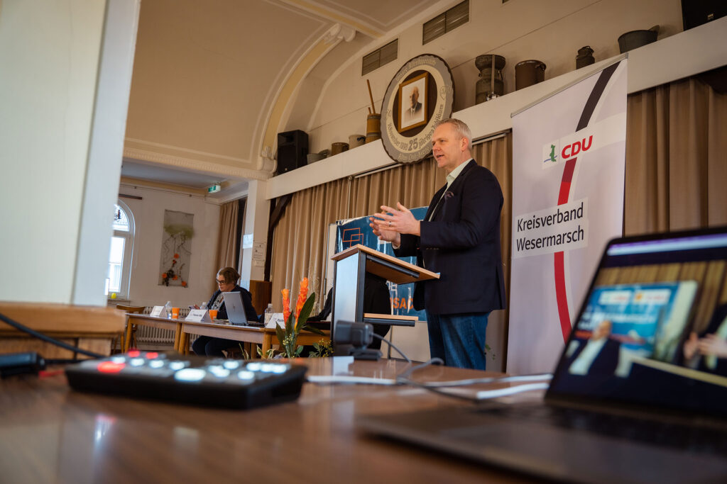 In seiner Rede steckte Thümler seine politischen Schwerpunkte für die Wahlkreis-Arbeit ab. Der Politiker rief dazu auf, die „Herausforderungen im Jetzt und Morgen mit Mut anzupacken“. Und Herausforderungen gibt es aus Sicht des Christdemokraten in Hülle und Fülle.